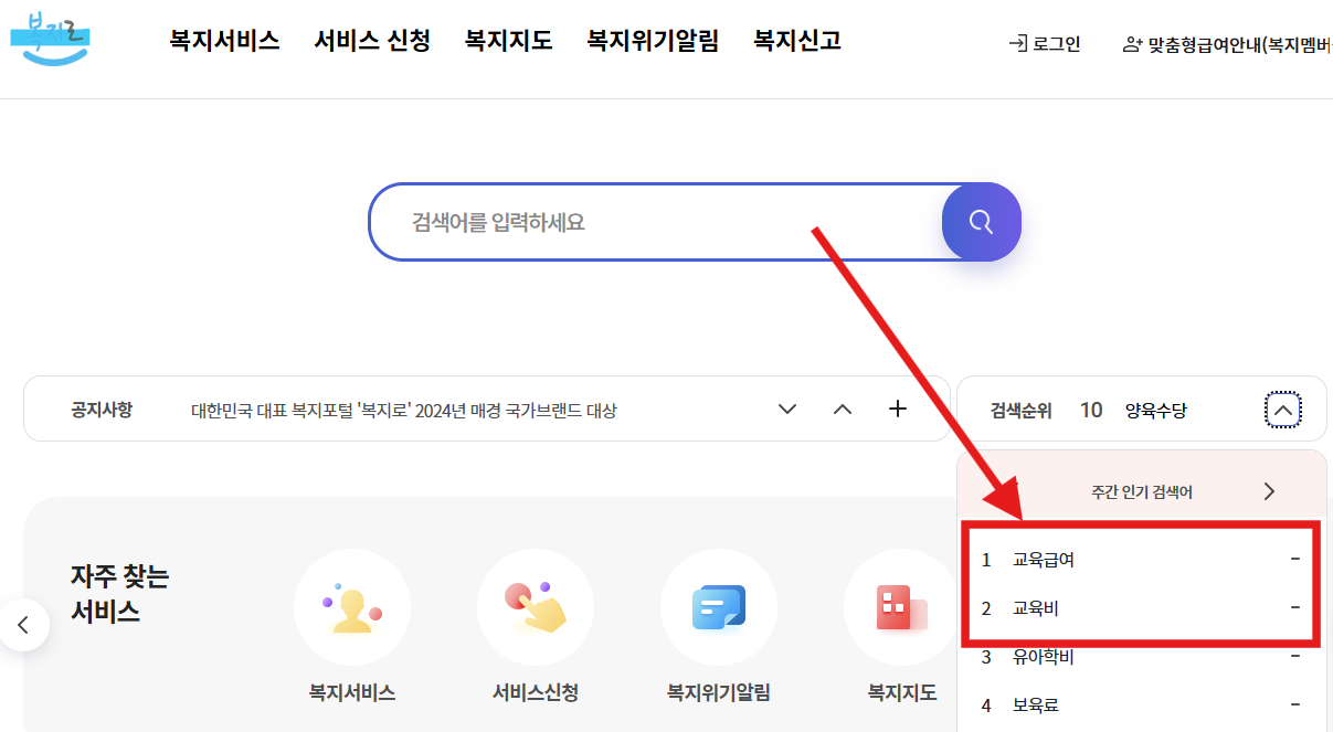 2️⃣ 교육급여/교육비 지원 신청 클릭