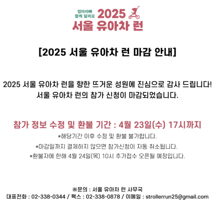✅ 서울 유아차 런 마감 안내